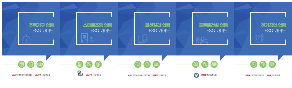 #### 중소기업 업종별 맞춤형 ESG경영 툴킷 ‘중소기업 업종별 맞춤형 ESG경영 툴킷(이하 중소기업 업종별 툴킷)’은 기존의 ESG 경영 콘텐츠가 중소기업 상황 및 업종별 특수성을 반영하지 못한다는 한계를 보완하기 위해 제작되었습니다. 중소기업 업종별 툴킷 특징 - 중소기업 상황 반영 - 업종별 특수성 반영 중소기업 업종별 툴킷은 △한국주택가구협동조합 △한국스마트조명협동조합 △한국패션칼라협동조합연합회 △여수플랜트건설·유지·보수사업협동조합 △한국전기공업협동조합 5개의 협동조합을 대상으로 진행되었습니다.