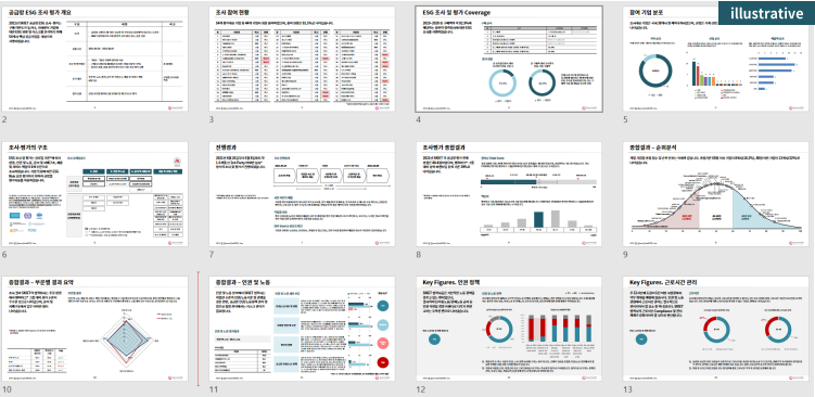퀀티파이드이에스지(QESG)는 2021년 4월 ~ 6월 2개월간 SK케미칼의 주요 협력사를 대상으로 인권 및 노동, 환경, 윤리 및 거버넌스, 제품 및 서비스 책임 4개 부문에서 산업-규모별 벤치마크를 토대로 산업별 조사지표를 적용한 ESG 진단 평가를 시행하였습니다. 협력사별 ESG 진단 평가를 토대로 주요 위험분석, 개선사항을 권고하고, 협력회사를 위한 개별 진단 보고서를 제공하였습니다.